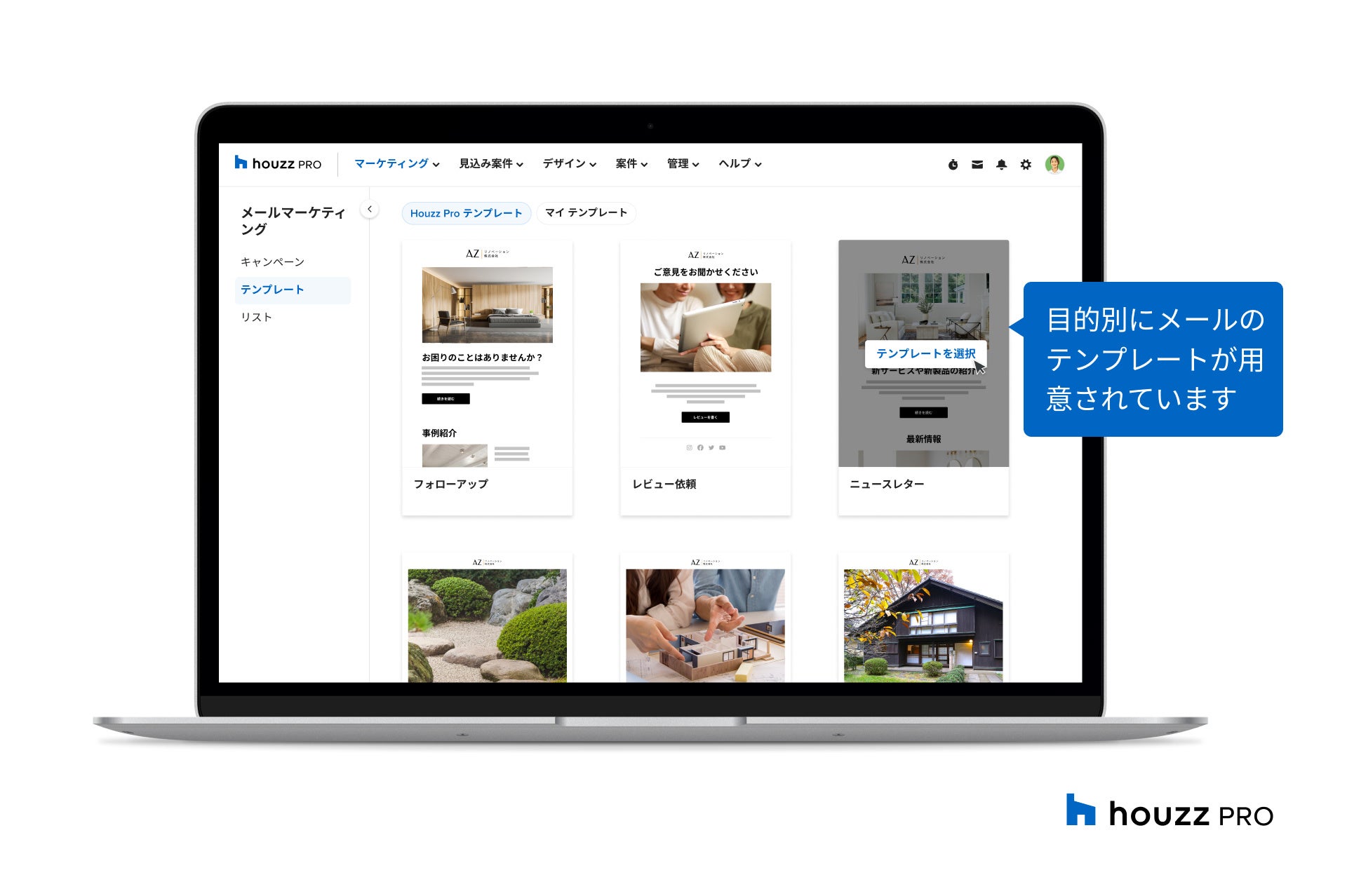 世界最大級の家づくりとインテリアデザインのプラットフォームを提供する Houzz Japan 株式会社(https://www.houzz.jp 以下 Houzz)は本日、マーケティングと業務効率化の統合型ソフトウェアである Houzz Pro への追加機能として「メールマーケティング」ツールを発表しました。この新しいツールにより、住まいの専門家は、カスタマイズ可能なテンプレートを使ってニュースレターや会社の最新情報などをすばやく簡単に作成、送信し、結果をトラッキングすることができます。