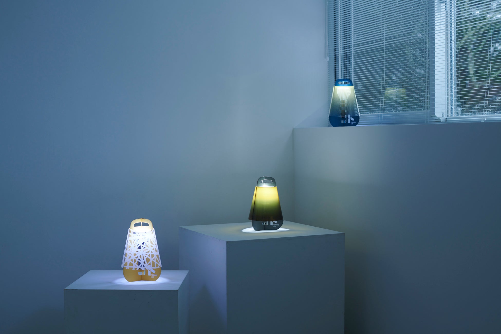 「TOMORI AID(トモリエイド)」はデザイナー本人が災害で避難した経験から、防災グッズである懐中電灯の直線的な光を、ランタンのような心和むやわらかな光に変え、不安な夜を減らす手助けができればという思いによって生まれた照明です。